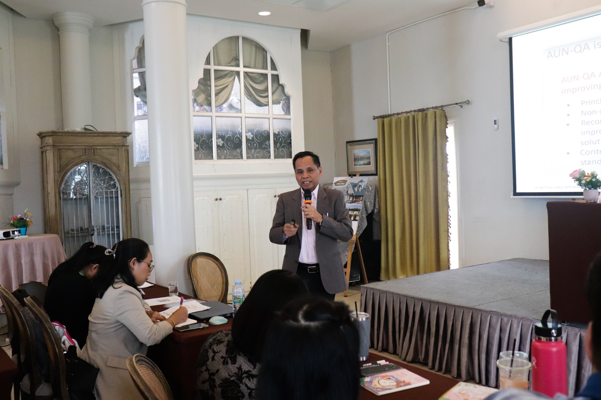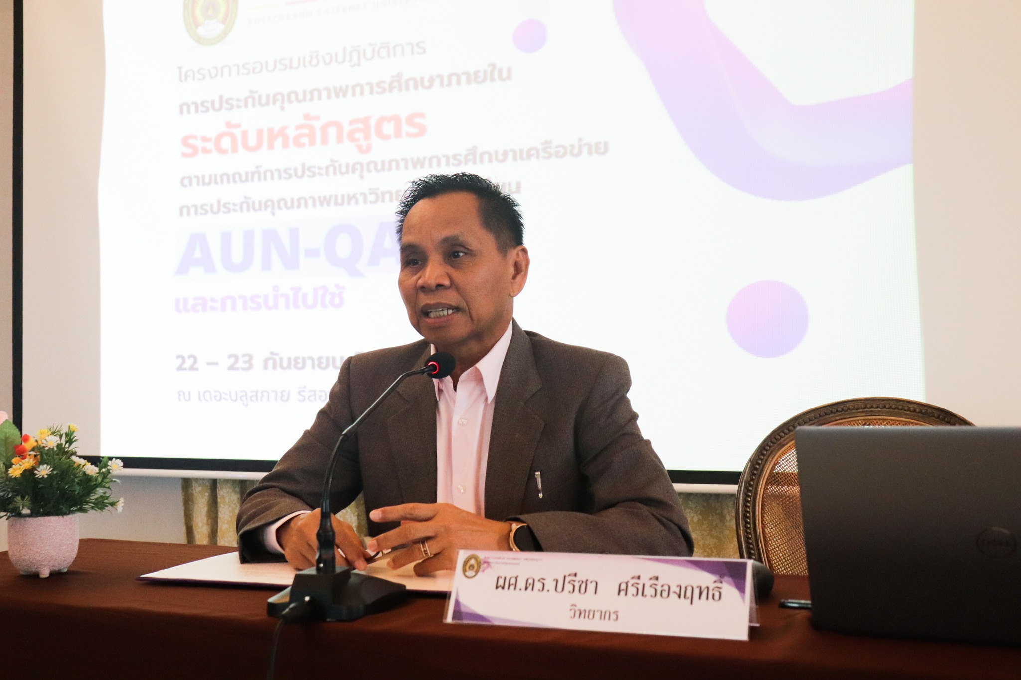 เพื่อให้การดำเนินการเป็นไปตามเป้าหมาย งานประกันคุณภาพและการประเมินจึงได้จัดโครงการ “พัฒนาศักยภาพและเพิ่มขีดความสามารถเพิ่มเติมในการเตรียมความพร้อมเป็นผู้ประเมินในการประกันคุณภาพการศึกษา ระดับหลักสูตร ตามเกณฑ์เครือข่ายการประกันคุณภาพมหาวิทยาลัยอาเซียน (AUN-QA) เพื่อเป็นการพัฒนาศักยภาพและพัฒนาขีดความสามารถเพิ่มเติม สำหรับผู้ผ่านการฝึกอบรมผู้ประเมินการประกันคุณภาพการศึกษา ระดับหลักสูตร ตามเกณฑ์การประกันคุณภาพการศึกษาเครือข่ายการประกันคุณภาพมหาวิทยาลัยอาเซียน (AUN-QA) รุ่นที่ 1 สังกัดมหาวิทยาลัยราชภัฏเพชรบูรณ์ ให้สามารถขึ้นทะเบียนเป็นผู้ประเมินคุณภาพการศึกษาภายใน ระดับหลักสูตร ตามเกณฑ์ AUN-QA Version 4 ของมหาวิทยาลัยราชภัฏเพชรบูรณ์ได้ โดยได้รับเกียรติจาก อาจารย์ ดร.พฤฒินันท์ สุฤทธิ์ จากคณะวิทยาศาสตร์การแพทย์ มหาวิทยาลัยนเรศวร เป็นวิทยากรบรรยายให้ความรู้ในการอบรมครั้งนี้